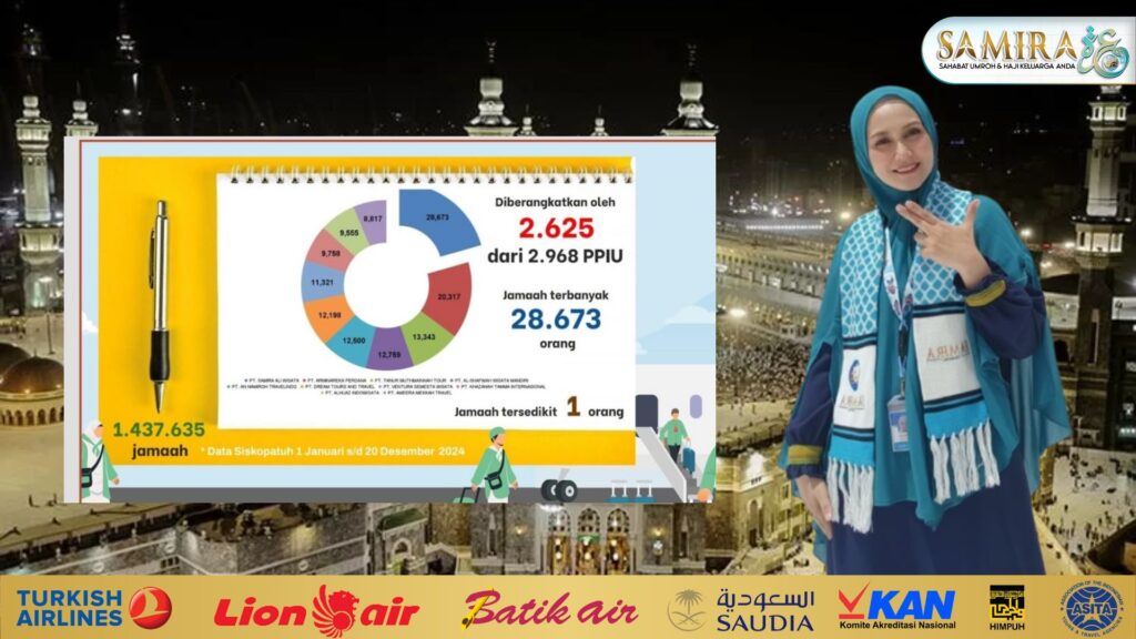 Sejak 2021 sampai Mei 2025 alhamdulillah samira travel menjadi travel dengan jamaah terbanyak di Indonesia. Pencapaian ini menandakan samira travel adalah travel umroh yang amanah dan bisa dipercaya untuk mewujudkan impian anda menjalankan ibadah umroh yang mabrur. Selama 2024 Samira Travel tercatat memberangkatkan 28.673 Jamaah.